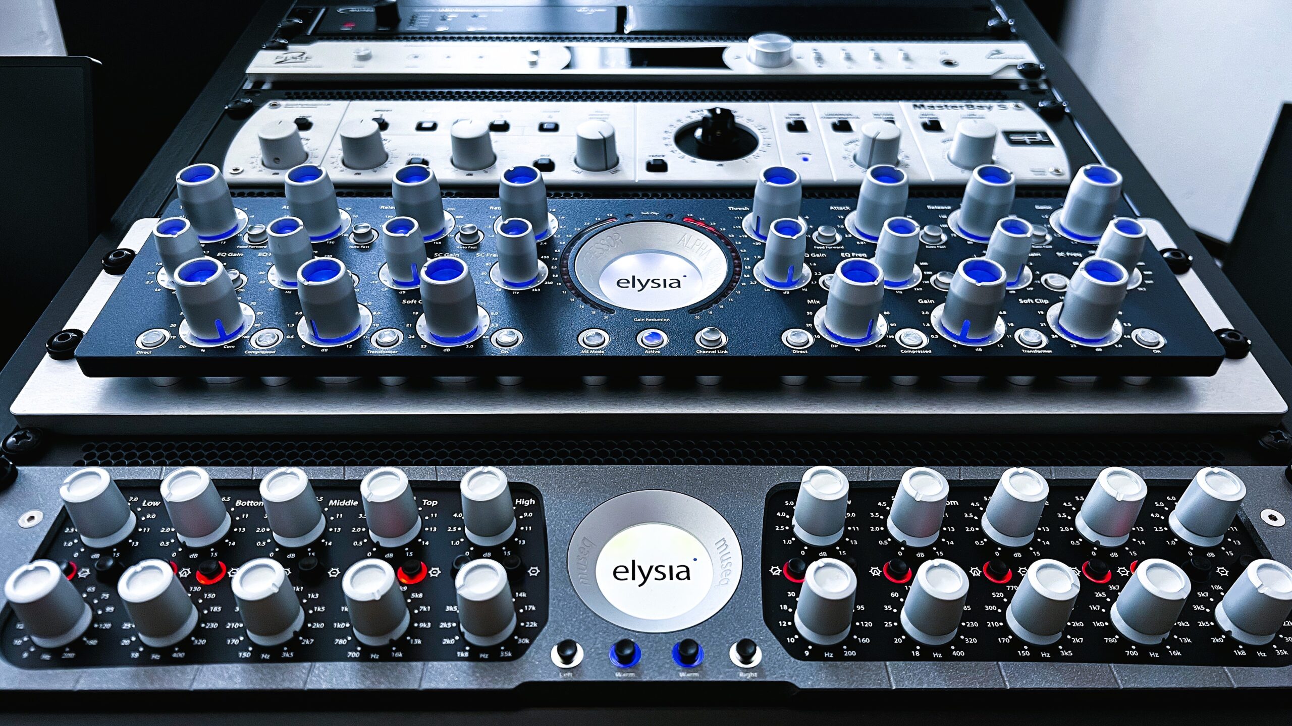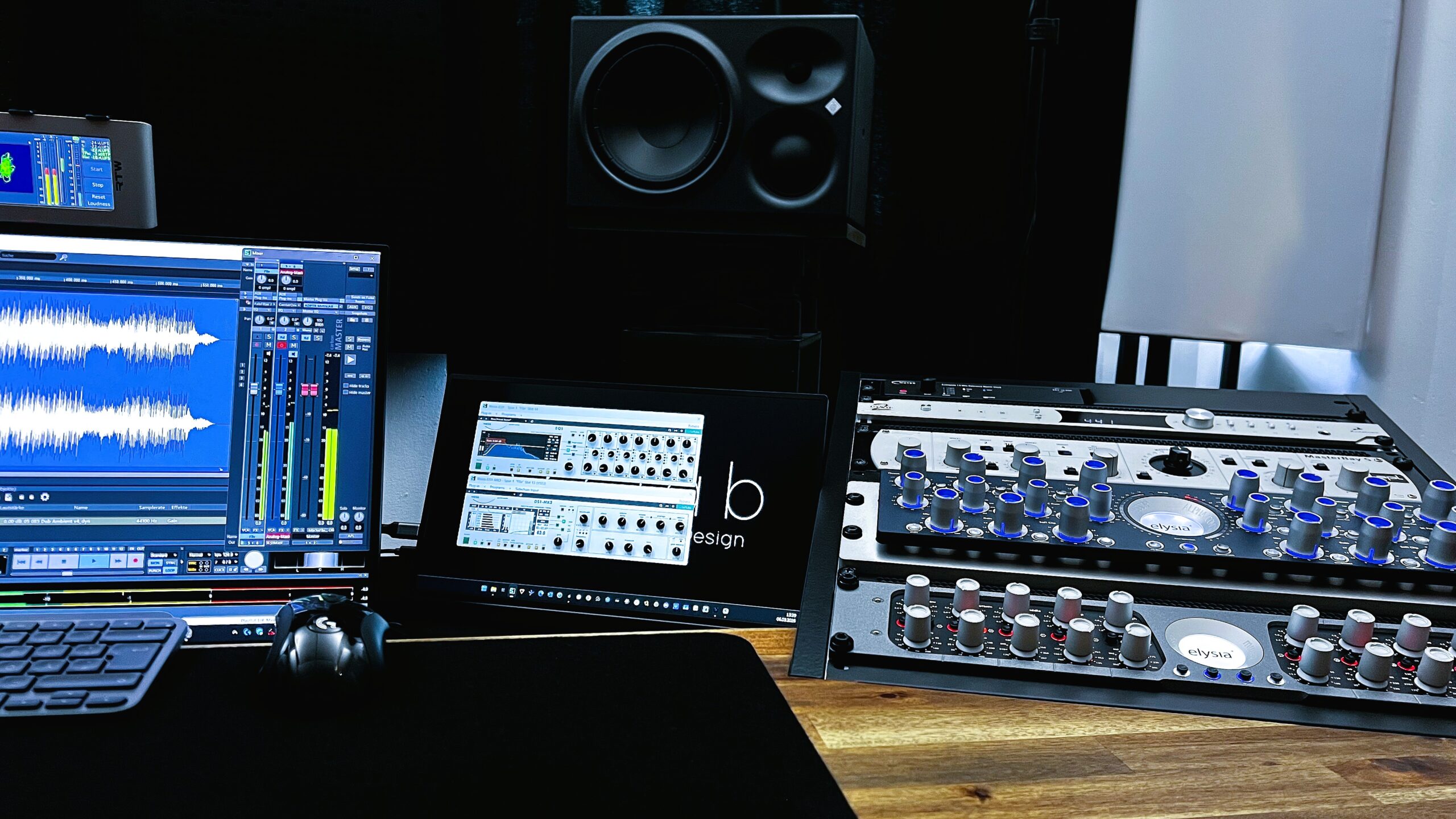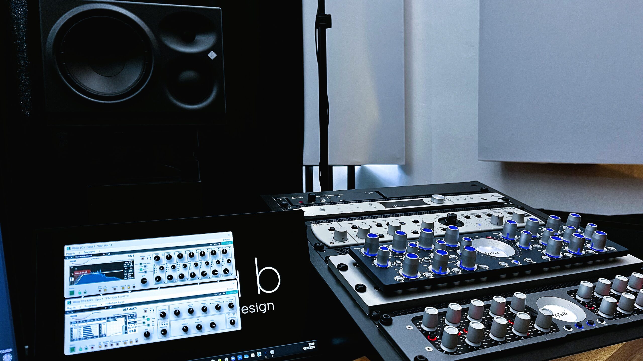 Das Studio verfügt über eine selektierte Auswahl an analoger Hardware. Mit High-End Mastering Geräten wie dem Elysia Alpha Compressor und dem Gyraf XIV Parallel Passive Equalizer kann Musik Tiefe und Leben eingehaucht werden.