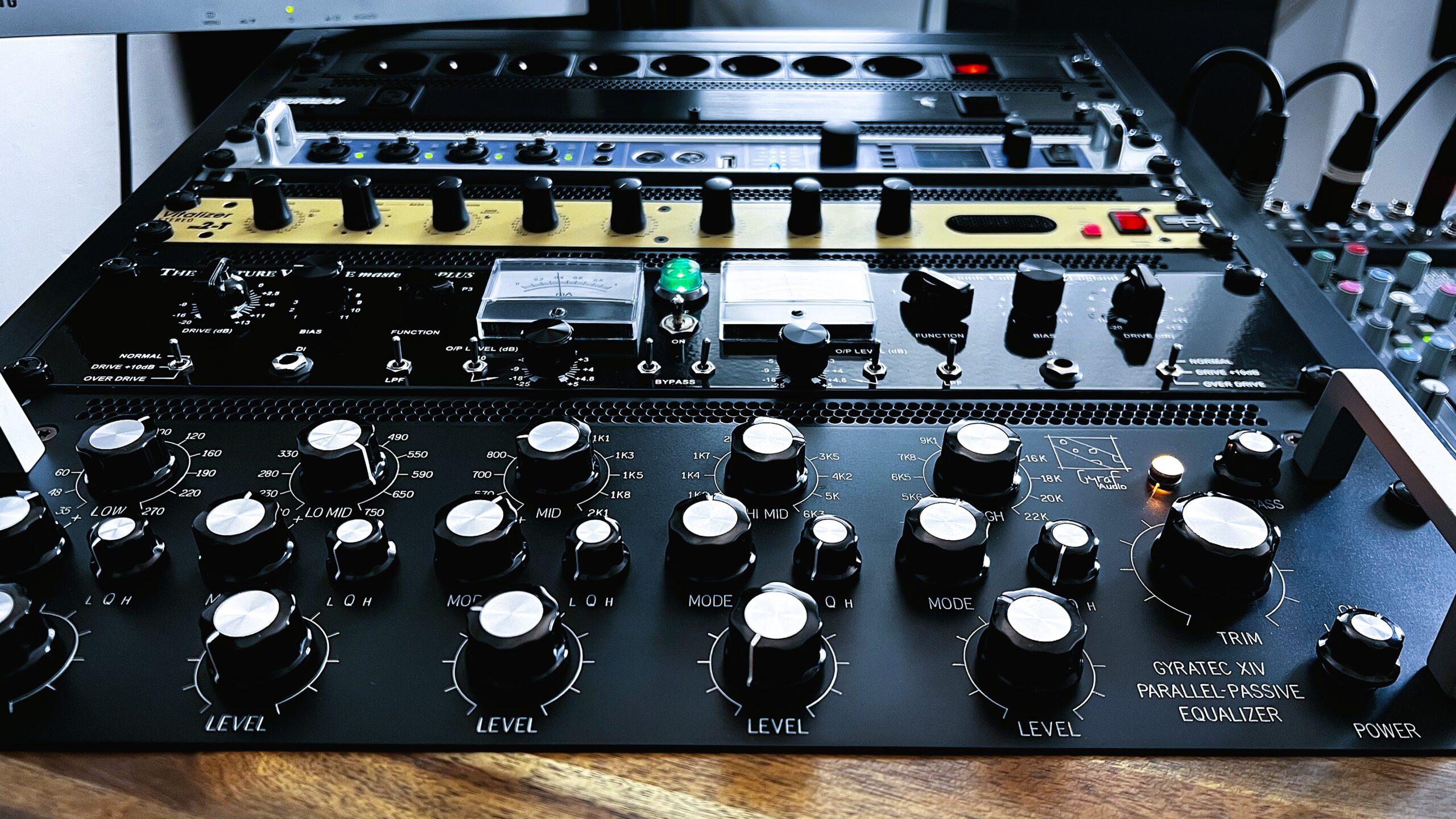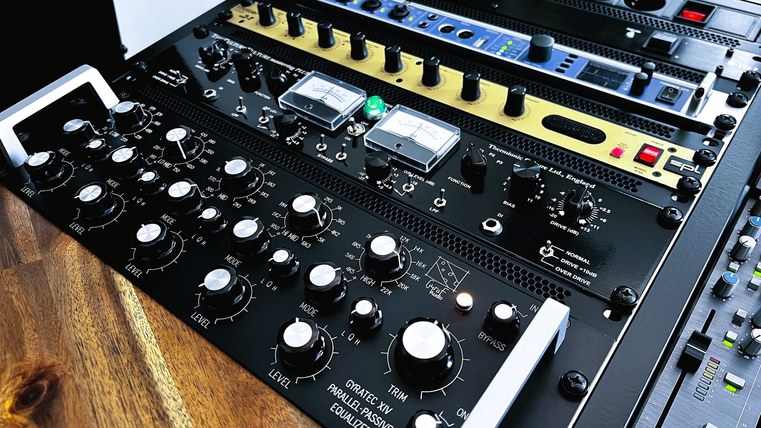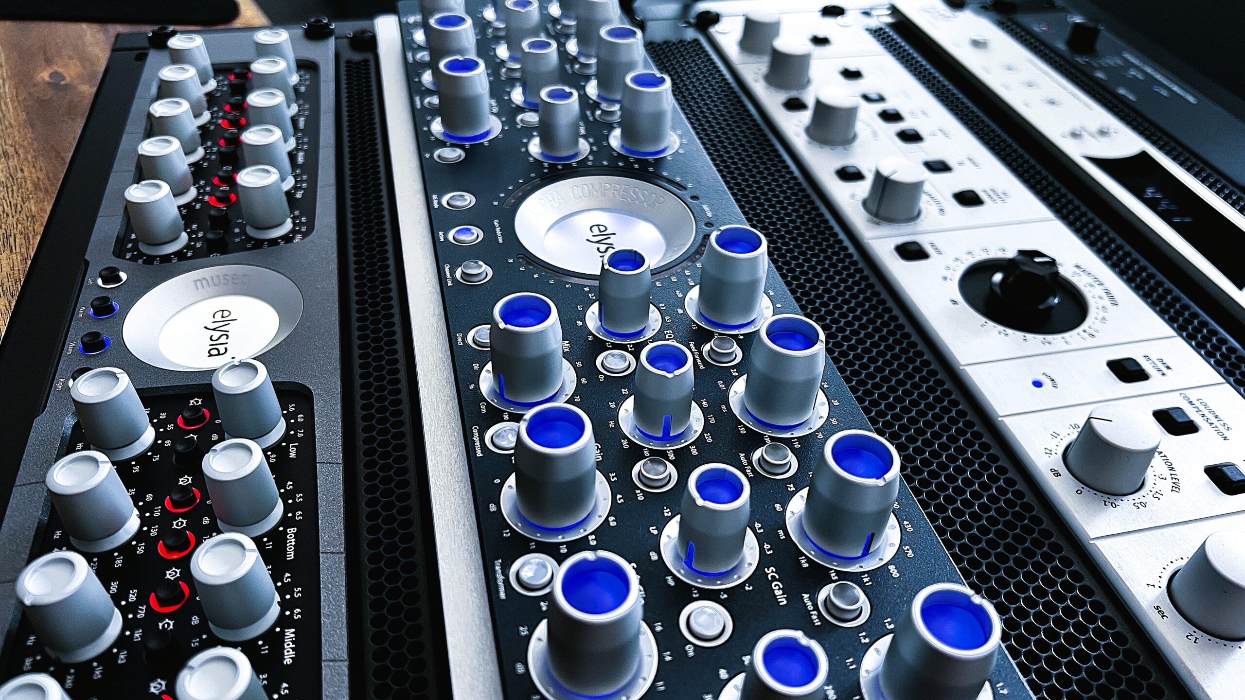 Das Studio verfügt über eine selektierte Auswahl an analoger Hardware. Mit High-End Mastering Geräten wie dem Elysia Alpha Compressor und dem Gyraf XIV Parallel Passive Equalizer kann Musik Tiefe und Leben eingehaucht werden.